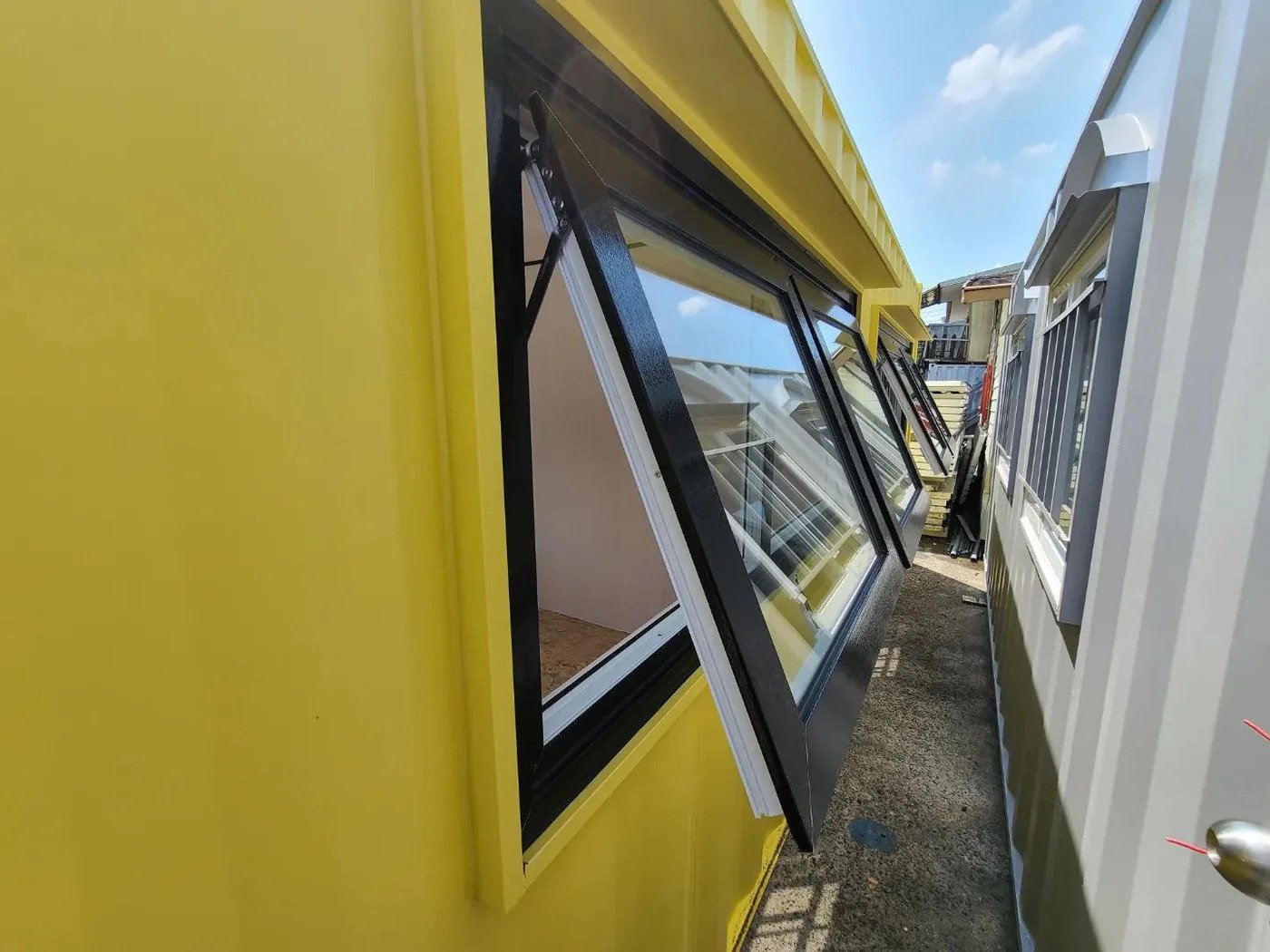 Estructura de acero soldada profesionalmente formada por perfiles huecos y laminados autoportantes, imprimados y pintados (espesor 3 mm S235) sobre una base de poliuretano, posibilidad de cambio Ral según las necesidades del cliente; esquinas del contenedor de 8 piezas.