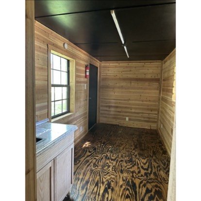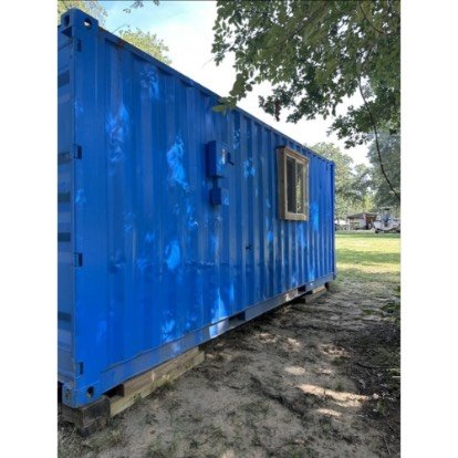 Casa contenedor de 20’x8′ con paredes de cedro y aislamiento de espuma en spray. Incluye armario con lavabo y baño de 4′ (hay que cambiar el inodoro). Debe ser movido por sí mismo.